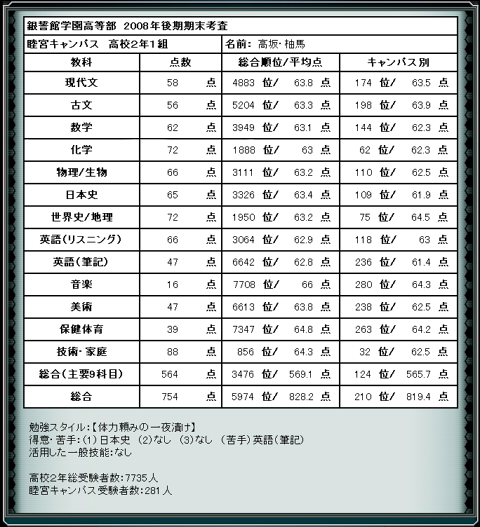 赤点は…まぁ…0じゃねーし、いっか、と…。